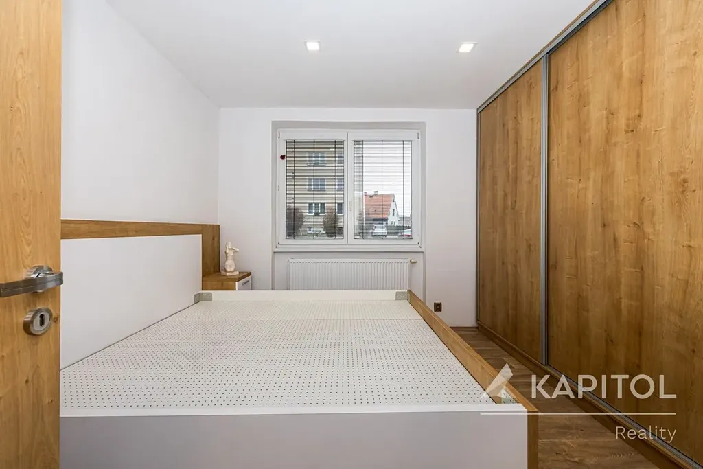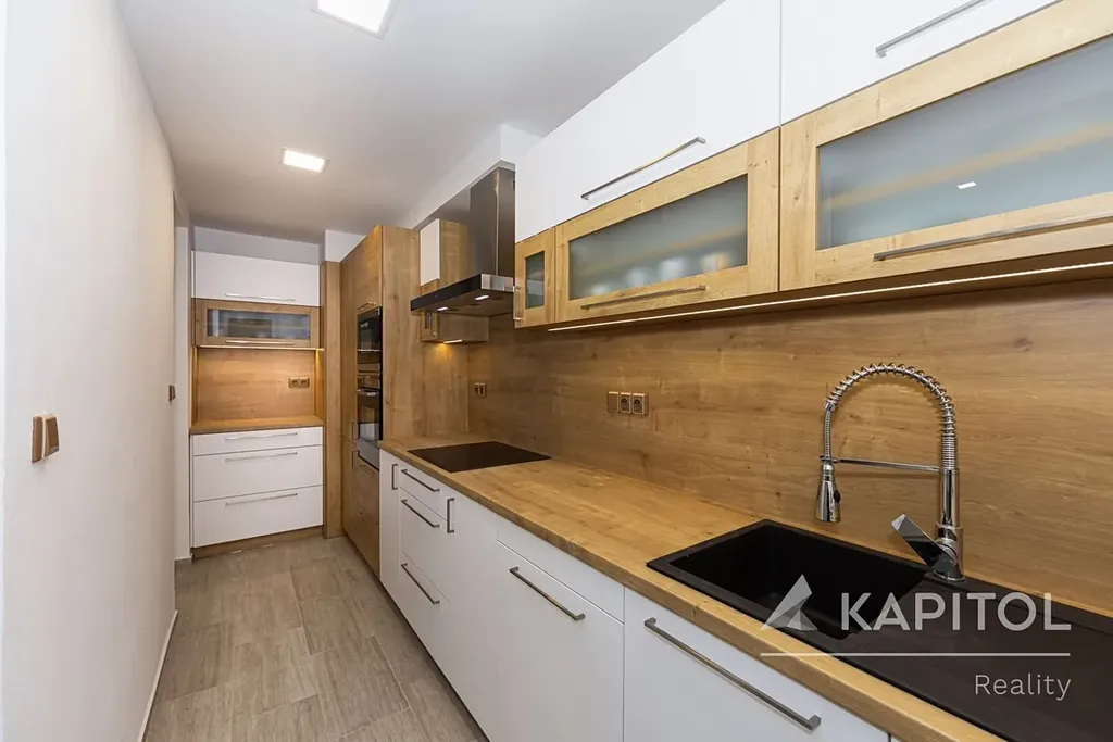Dominantou bytu je krásná nová kuchyňská linka plně vybavená spotřebiči včetně myčky. V ložnici je nová postel a praktická vestavná skříň na míru, která nabízí dostatek úložného prostoru.