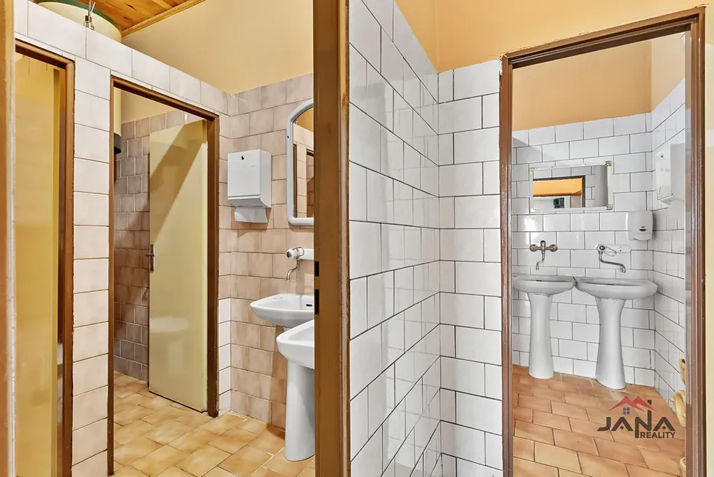 Zázemí pro personál zahrnuje šatny, sociální zařízení, skladové prostory a kancelář.