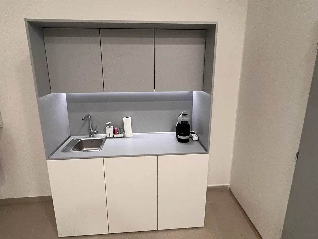 Přízemní kancelář - nebytový prostor o výměře 31 m2 s vlastním umyvadlem, oknem do dvora a čekárnou s novou kuchyňkou před kanceláří o výměře 11 m2, v novostavbě víceúčelového domu v Prostějově na ul. Uprkova. Nová kuchyňka s dřezem, osvětlením a zásuvkami pro kávovar či rychlovarnou konvici. Umístění kanceláře v budově v přízemí směrem do dvora, prosklený vstup na chodbě domu vpravo ihned za vstupními dveřmi do budovy s bezbariérovým přístupem. Možnost umístění firmy na banner u vchodu do budovy i na prosklenou dobře viditelnou část boční stěny u vstupu do čekárny.