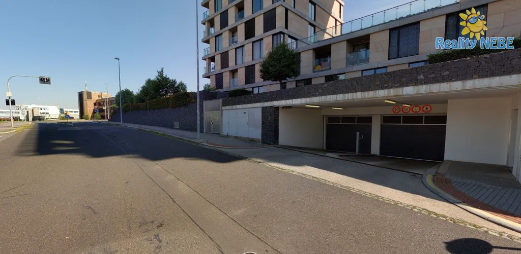 Vjezd do podzemních garáží vraty na dálkové ovládání, vhodné i pro dodávku či SUV.