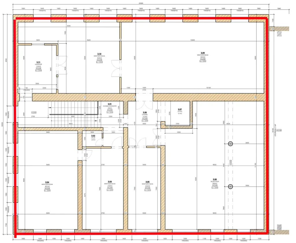V přízemí se nachází čistě kancelářské prostory, v 2. NP prostory, které lze využít jako kanceláře či sklady, v 3. NP pak prostory vhodné pro výrobu či skladování. Tyto jsou vybaveny dostatečným rezervovaným příkonem elektrické energie, rozvody vzduchu i nosností podlahových konstrukcí. Využít lze i portálový jeřáb.