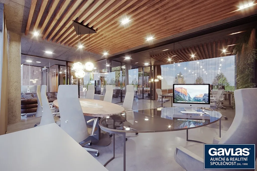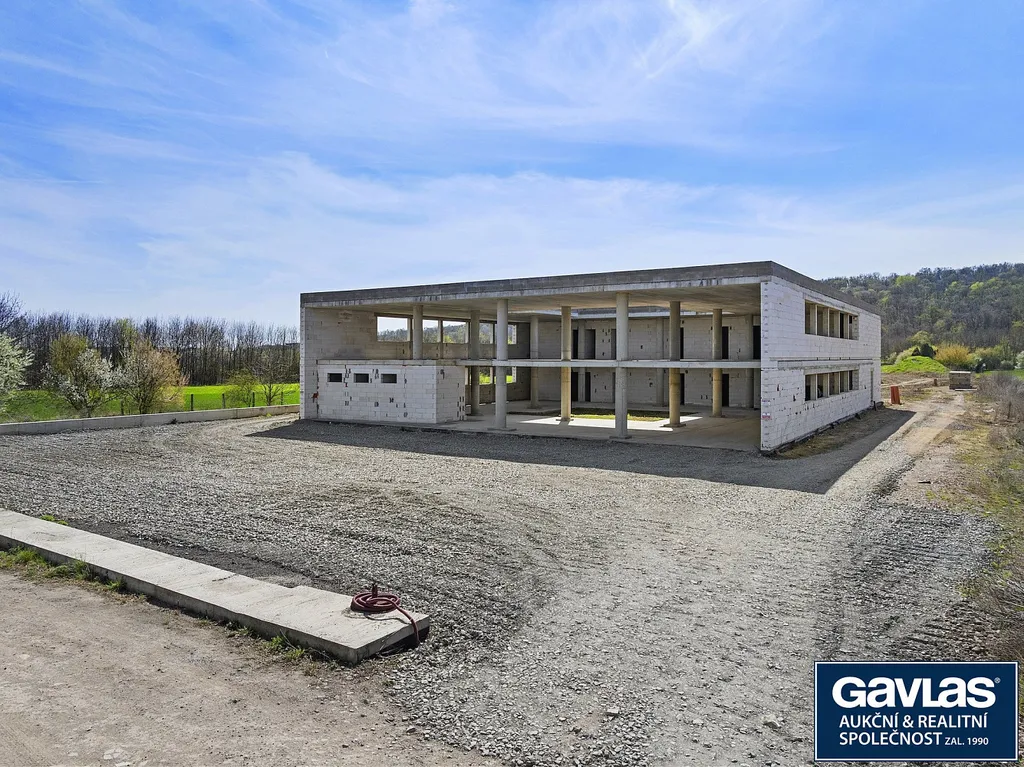 • Dvoupodlažní administrativní budovu ve fázi hrubé stavby s plánovanou užitnou plochou 983 m²