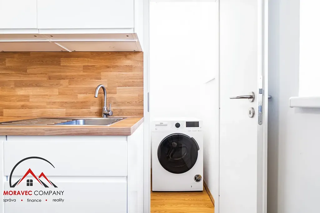 Jednotka je plně vybavena – nechybí nábytek, spotřebiče i nádobí. Stačí si jen přinést osobní věci a můžete bydlet!