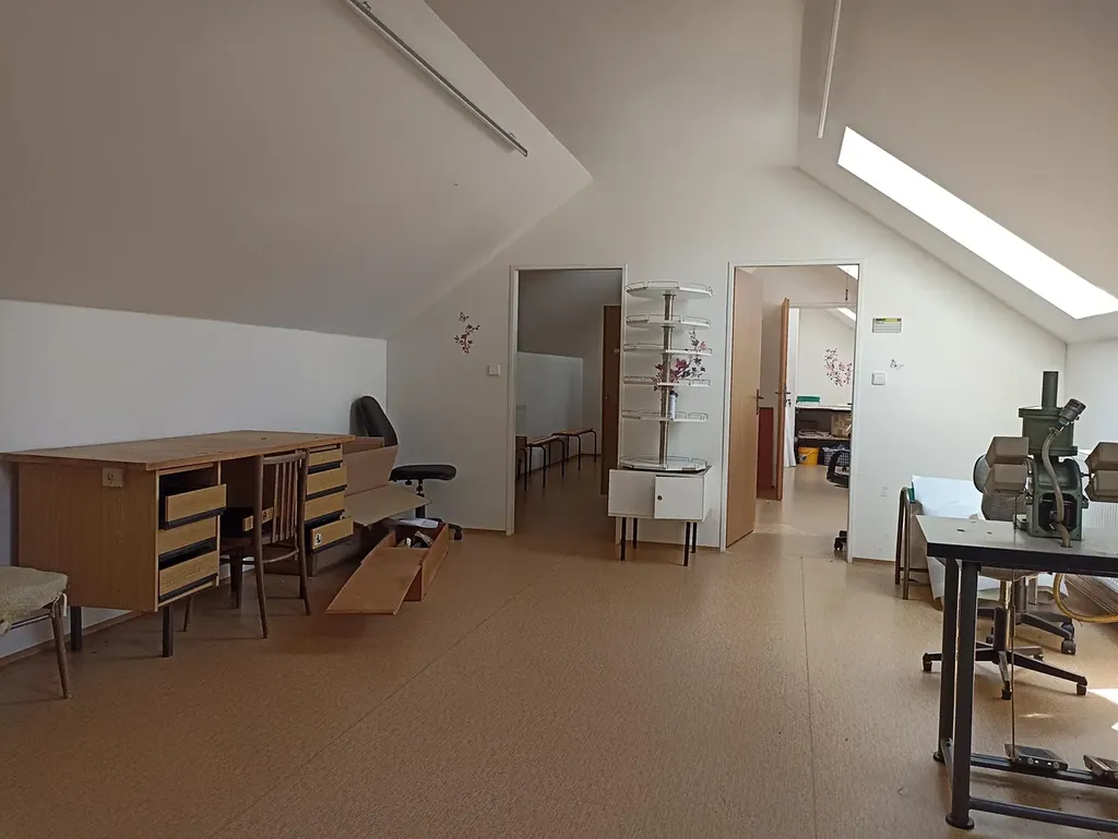 Jedná se o samostatně stojící budovu se dvěmi nadzemnímí podlažími a využitým podkrovím se sedlovou střechou krytou plechovou krytinou. Půdorysný tvar ,,U”. Objekt je z roku 2014. vytápění řešeno tepelným čerpadlem+na TP. Plocha areálu je 699,62 m2.