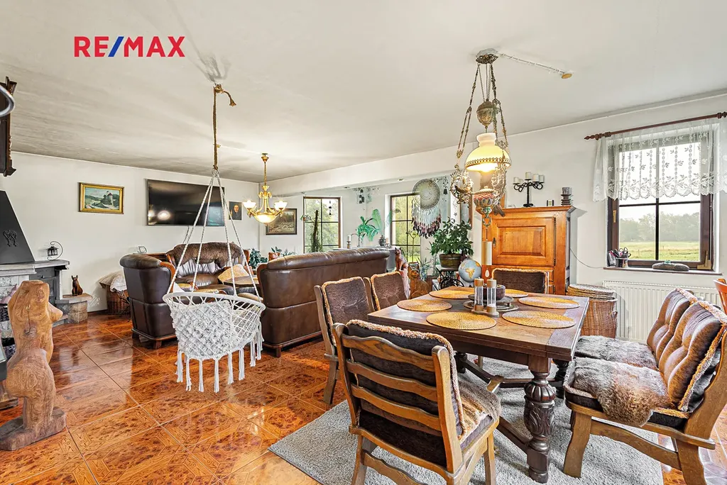 Součástí prodeje jsou další pozemky, celková rozloha všech pozemků je 114 059 m2. Přilehlý pozemek u domu o rozloze přes 12 000 m2 je v územním plánu veden jako stavební. Nemovitost se nachází na okraji obce, příjezd k domu je po zpevněné komunikaci.
