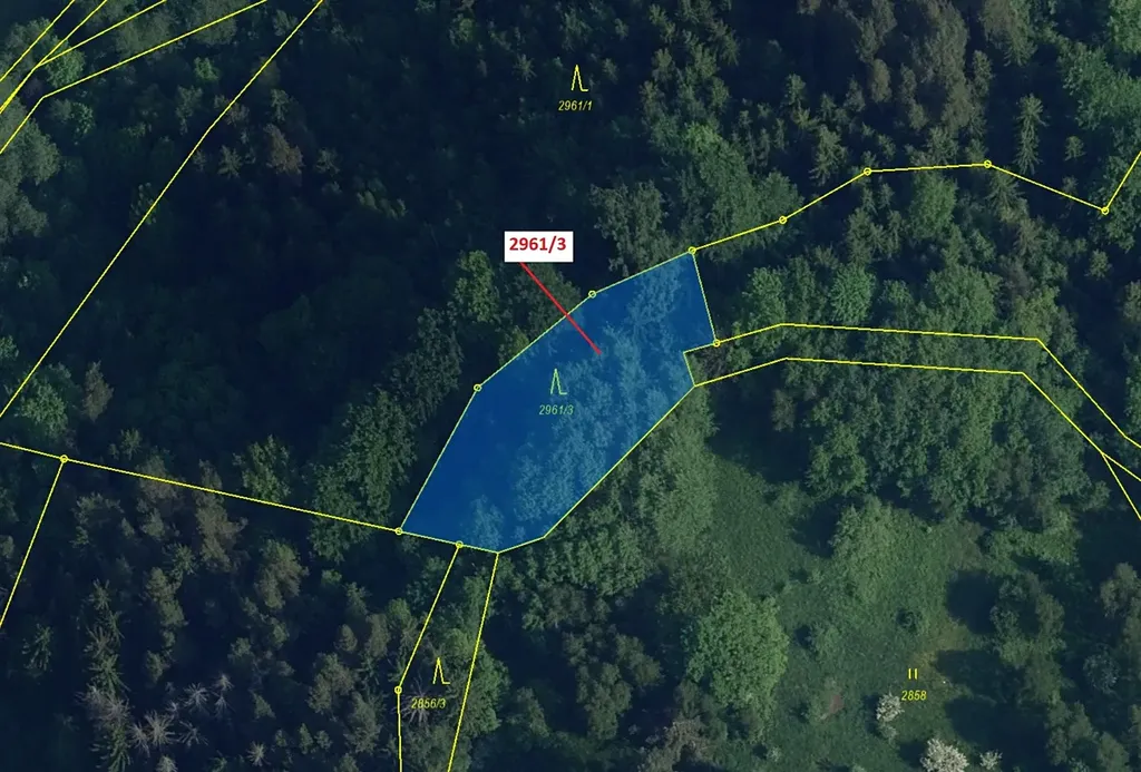 Lesní pozemek o výměře 1217 m2, parcelní číslo 2961/3, podíl 1/1, katastrální území Český Dub, obec Český Dub, obec s rozšířenou působností Liberec, okres Liberec, Liberecký kraj.