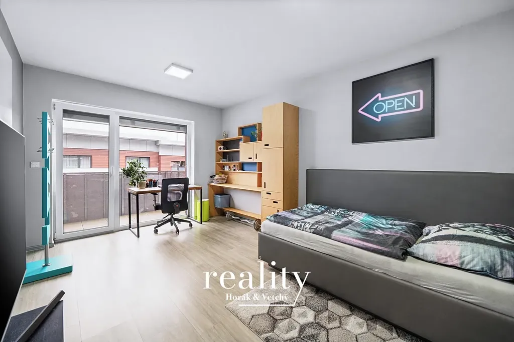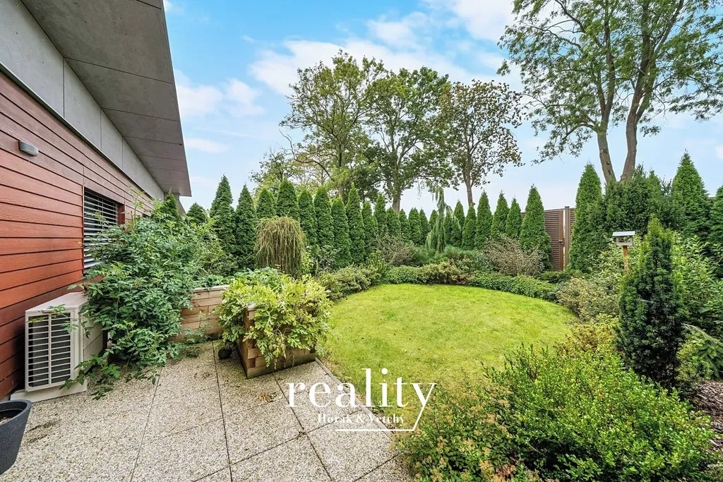 • Obývací pokoj s kuchyní: 34,6 m², vstup francouzským oknem na útulnou zahradu 84 m²,