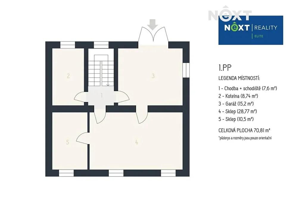 Sklepní prostory včetně garáže a kotelny jsou o výměře cca 70 m².