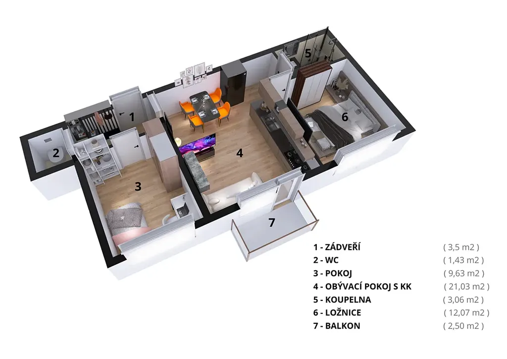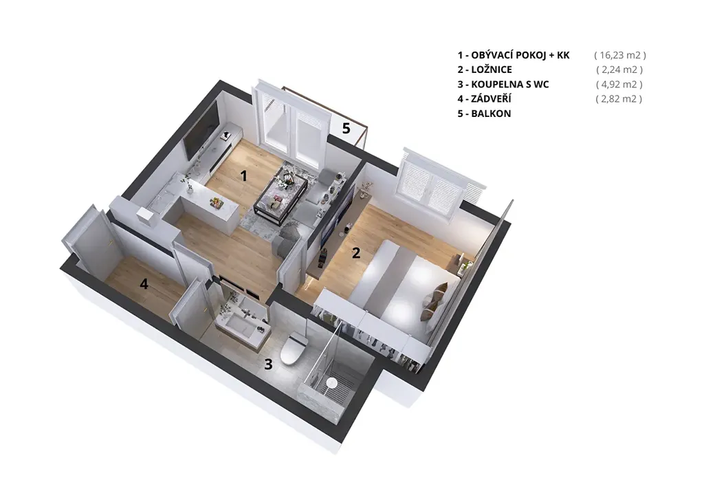 NP: bytové jednotky od 47,00 m² do 59,03 m² s balkonem