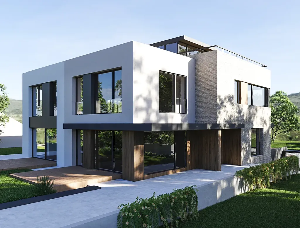 K dispozici je kompletní stavební povolení s nabytím právní moci pro výstavbu moderního dvojdomu, stavět můžete začít okamžitě. Nabízíme k prodeji parcelu s naprojektovaným objektem A z tohoto projektu. Dispozice projektu objektu A: 1.PP: Prostorné garáže pro vaše vozidla (sklepní prostory lze volitelně realizovat dle individuálních požadavků, nyní neuvažujeme s výstavbou sklepa pod hlavní částí objektu). 1.NP: Prostorné zádveří, velkorysý obývací pokoj s přímým vstupem na terasu, moderní kuchyně s jídelním prostorem, komfortní pokoj s vlastní koupelnou a šatnou, s přímým výstupem do zahrady. 2.NP: Tři světlé a prostorné pokoje, komfortní koupelna. 3.NP: střešní terasa se SPA zónou, místo pro dokonalý relax.