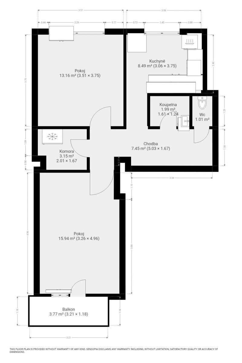 Interiér je čistý, vzdušný a připravený na vaše vlastní zařízení – byt je pronajímán nevybavený, takže si jej snadno doladíte přesně podle svého stylu. Dispozice 2+1 poskytuje pohodlné zázemí jak pro pár, tak pro jednotlivce, kteří chtějí víc prostoru na práci i odpočinek.