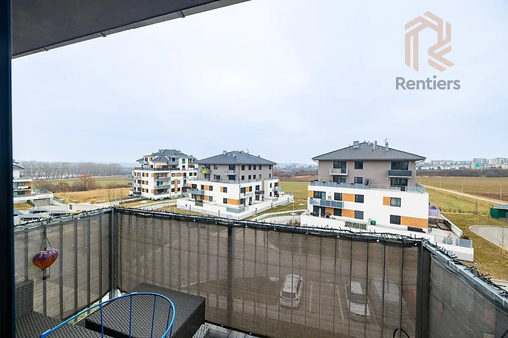 Byt nabízí příjemný obytný prostor s kuchyňským koutem, samostatnou ložnici, koupelnu a vstupní chodbu s dostatkem místa pro úložné prostory. Z obývací části je vstup na balkon o velikosti 4,2 m², ideální pro ranní kávu, odpočinek nebo menší posezení. Pro dokonalý komfort byly na všech oknech nainstalovány předokenní elektrické rolety.