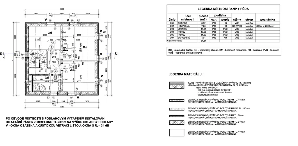 Nabízený rodinný dům je určen pro pohodlný život 4-5 členné rodiny. Dispozice 5+KK nabízí užitnou plochu 122 m². Bohatý vnitřní prostor zahrnuje v přízemí obývací pokoj spojený s kuchyňským koutem, dále pokoj pro hosty nebo pracovnu, zádveří, předsíň, koupelnou se sprchovým koutem a WC, komoru. Po pohodlném dvouramenném betonovém schodišti vystoupáte do 2. patra, kde se nachází ložnice a 2 dětské pokoje, samostatná koupelna s rohovou vanou a WC. Z části galerie může být např. šatna. Pro zvýšení obytného prostoru je možné za příplatek vytvořit další 2 pokoje v podkroví, čímž se může zvýšit plocha domu až na 152 m2. Dům je stavebně povolen s tepelným čerpadlem s podlahovým vytápěním, krbovým komínem, hromosvodem a podlahovými krytinami ve variantě vinylu nebo keramické dlažby. Do domu může být přiveden i plyn.