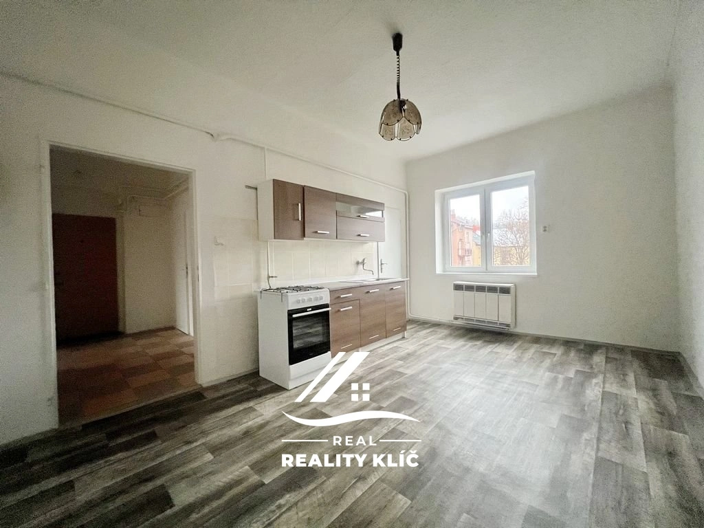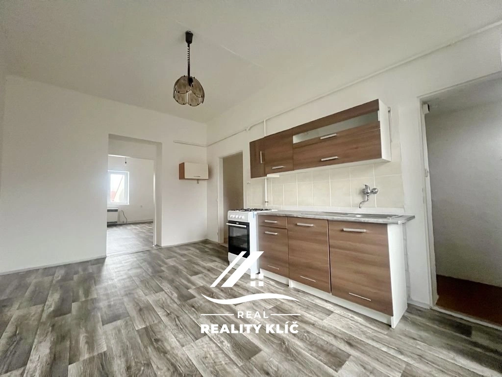 Po vstupu do bytu vás přivítá prostorná chodba, ze které je zajištěn přístup do jednotlivých místností. Nachází se zde kuchyň s kuchyňskou linkou se spíží, dále koupelna vybavená vanou, umyvadlem a WC. Byt disponuje také dvěma samostatnými místnostmi, které jsou vhodné k využití jako ložnice či obývací pokoj.