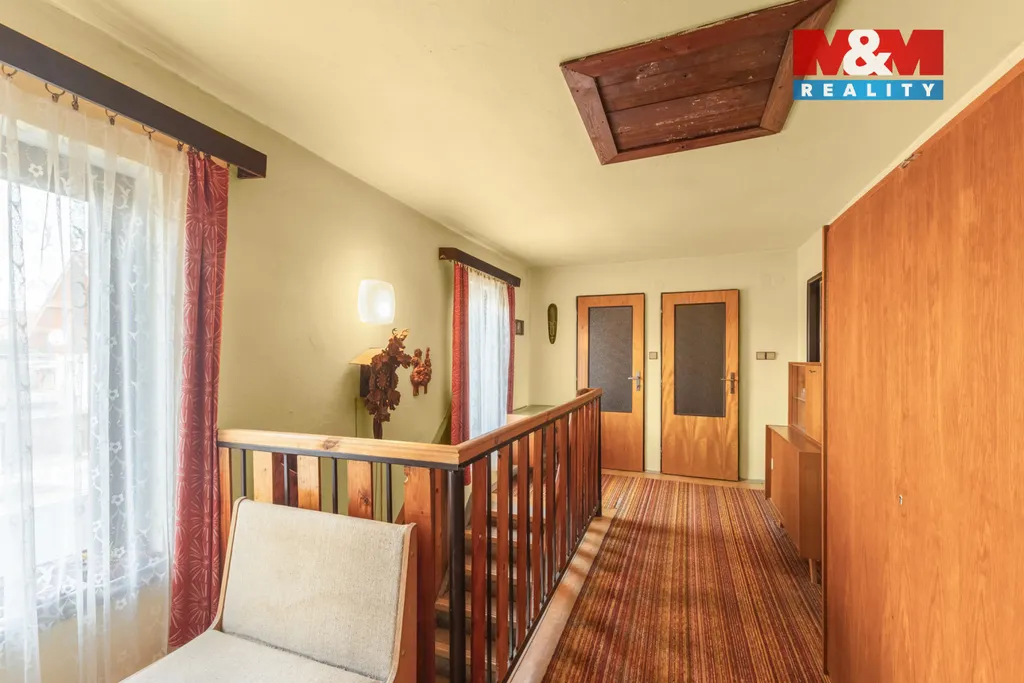 Dům s dispozicí 4+1 nabízí dvě ložnice, obývací pokoj, jídelnu, ze které je vstup na zahradu, kuchyň, koupelnu, dvě toalety, dvě komory, sklep a garáž. Před několika lety prošla nemovitost rekonstrukcí, která zahrnovala výměnu oken, zateplení obvodových stěn a půdy. Dům je napojen na veškeré IS, ohřev vody zajišťuje el. bojler, vytápění plynový kotel a krbová kamna. Zahrada o velikosti 392 m² s malým zahradním domkem vám od jara do podzimu nabídne dostatek prostoru pro odpočinek. V obci se nachází mateřská i základní škola, pošta, praktický lékař, Dům služeb, obchod s potravinami, tenisové kurty, fotbalové hřiště, dětské hřiště, in-line dráha a nádherný rybník. Velikým benefitem je skvělá dostupnost do Prahy, pravidelná autobusová linka vás za 25 minut doveze na pražského metro Nádraží Veleslavín. PENB je objednán. Pro více informací a prohlídku kontaktujte makléře.