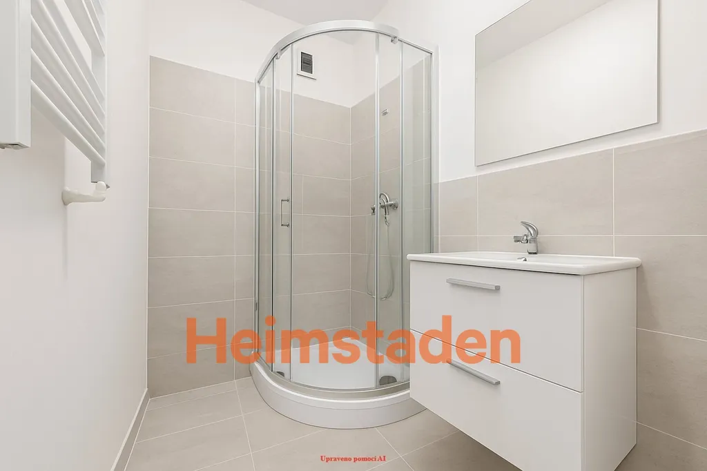 Stejný designový koncept pokračuje i v koupelně, která je kompletně obložena a vydlážděna v šedých tónech. K dispozici je praktický sprchový kout, který odpovídá nárokům moderního bydlení. Byt působí vzdušně, udržovaně a je připraven k nastěhování bez nutnosti dalších investic.
