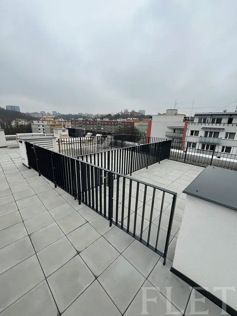 Velkým benefitem tohoto bytu je soukromá střešní terasa o výměře 16 m², ideální pro relax, posezení s přáteli nebo klidné chvíle na čerstvém vzduchu.