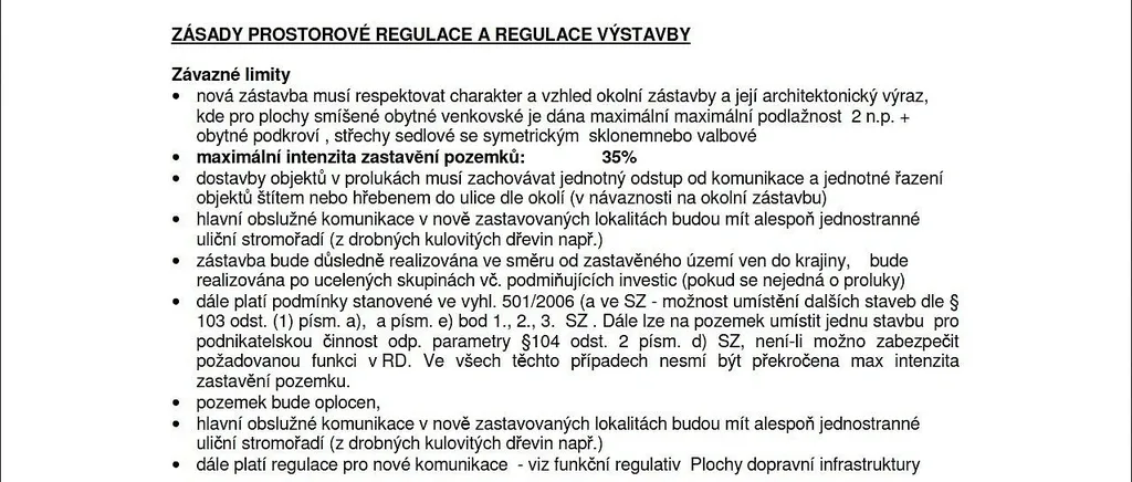 • výstavbu až do 35 % zastavěnosti,