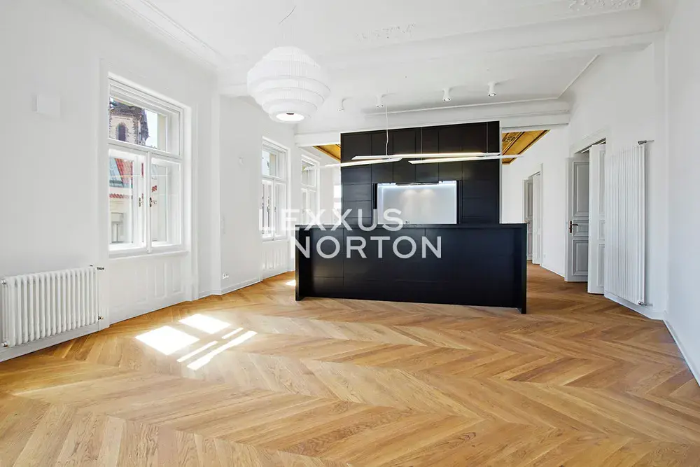 Velkoryse rekonstruovaný, nezařízený byt k pronájmu v historickém centru Prahy se zachovanými původními prvky o dispozici 3+1 a celkovou výměrou 160 m2 v exkluzivní historické lokalitě Praha 1 - Staré Město. Prostorný, světlý byt k pronájmu v samém centru města, v 5. nadzemním podlaží šestipodlažního secesního činžovního domu s výtahem.