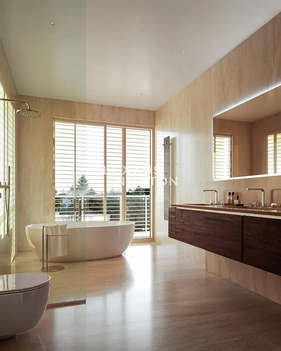 Všechny prostory jsou provedeny v nadstandardní kvalitě – samozřejmostí jsou hliníková okna s izolačním trojsklem a elektricky ovládané žaluzie, dřevěné dubové parkety v obytných místnostech, stropní vytápění a chlazení s možností ovládání přes mobilní aplikaci a centrální rekuperace pro zdravé vnitřní prostředí. V koupelnách najdete prémiovou sanitu a velkoformátovou keramiku značek Villeroy & Boch a Hansgrohe. Byt je vybaven chytrou domácností a umožňuje individuální úpravy podle přání klienta. U jednotky je také příprava na vířivku, venkovní sprchu, markýzu, noční osvětlení a saunu, vstupní dveře splňují 3. bezpečnostní třídu.