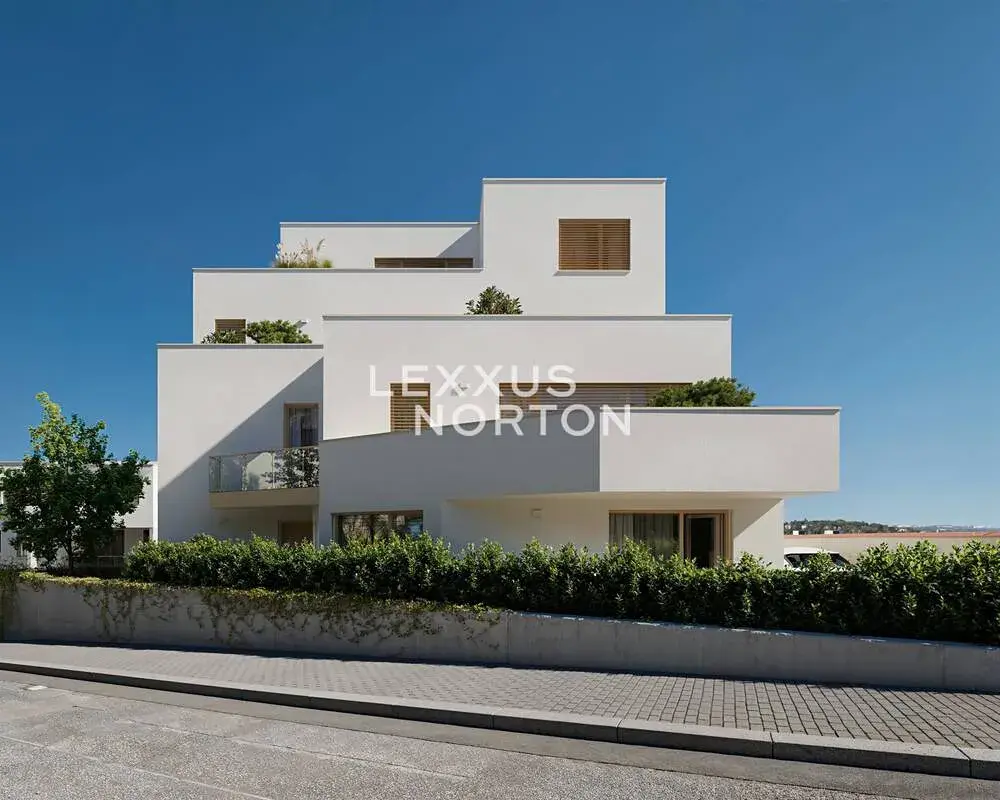 Praktické příslušenství zajišťuje sklepní prostor a dvě garážová stání. Přímý vstup na terasu a zahradu orientovanou do klidného vnitrobloku zaručuje maximální soukromí a pohodlí.