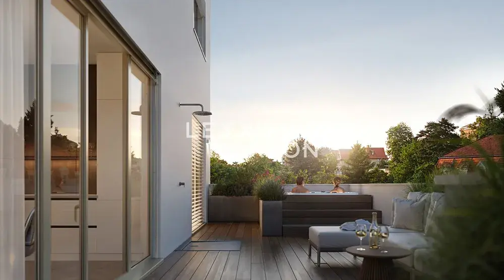 Veškeré vybavení bytu odpovídá prémiovým standardům . Hliníková okna s izolačním trojsklem jsou vybavena elektricky ovládanými venkovními žaluziemi, což zajišťuje dokonalé ticho, soukromí i tepelný komfort v každém ročním období. V obytných místnostech jsou položeny dubové parkety, které vnášejí do prostoru eleganci a útulnost. O vzduch v bytě se stará centrální rekuperace s čističkou vzduchu. Stropní vytápění a chlazení lze ovládat přes mobilní aplikaci, což umožňuje plně přizpůsobit teplotu aktuálním potřebám. Byt je rovněž vybaven chytrou domácností. Koupelna je vybavena sanitou značek Villeroy & Boch a Hansgrohe, což zaručuje vysoký komfort i dlouhou životnost. Majitel bytu ocení také přípravu na instalaci venkovní sprchy, markýzy na terase, sauny nebo večerního osvětlení.