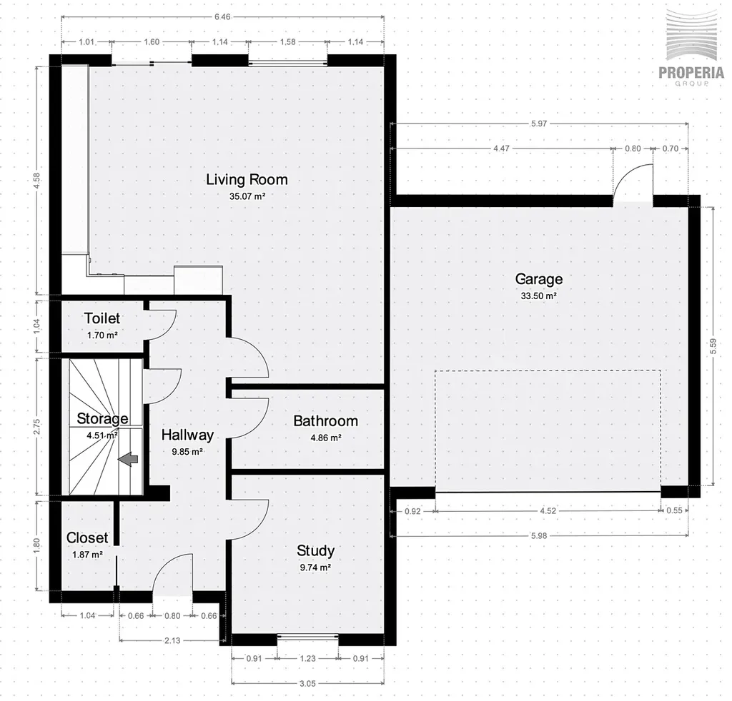Součástí domu je také prostorná dvojgaráž o výměře 34 m², která poskytuje nejen komfortní parkování, ale i dostatek úložného prostoru.