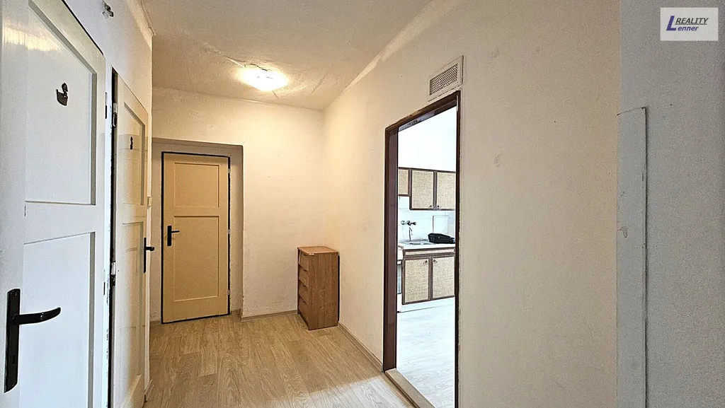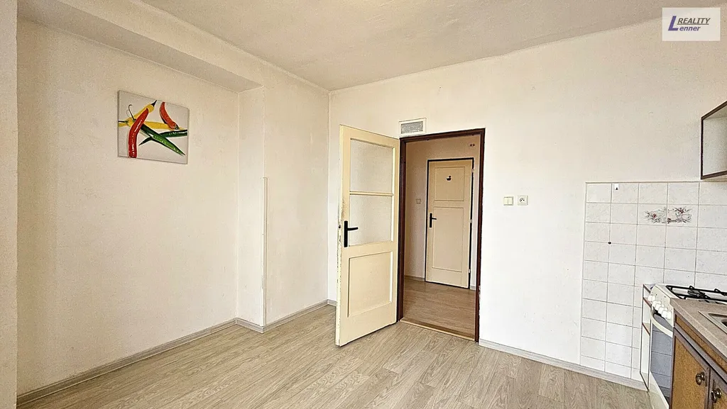 Dispozičně je byt řešen: zádveří a chodba, komora, kuchyň (13 m2) vč. kuchyňské linky, z kuchyně je vstup na balkon, prostorný obývací pokoj (16.6 m2) ložnice (14.6 m2), koupelna s vanou a samostatná toaleta.