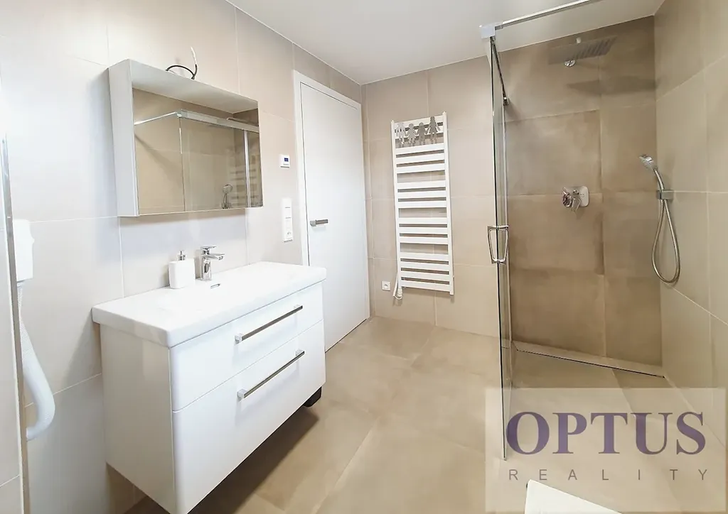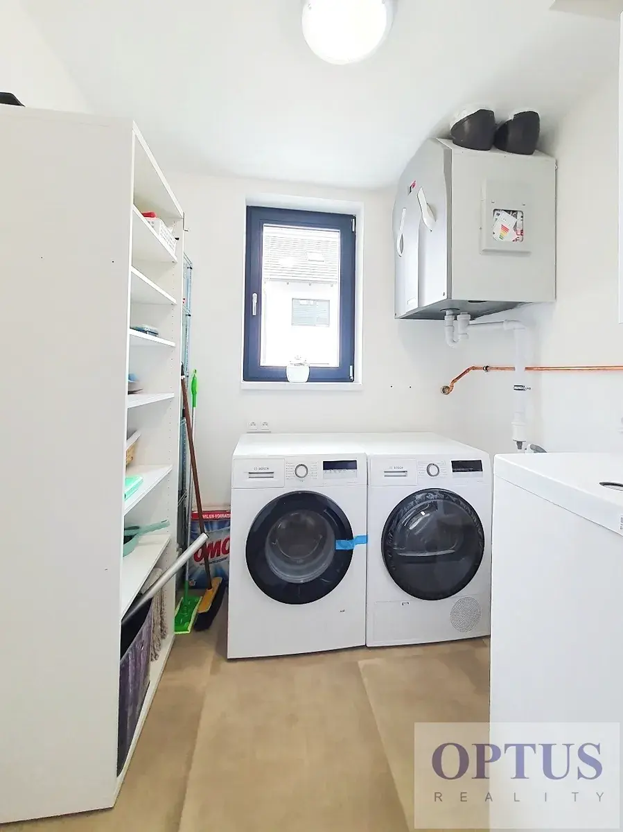 Nový zařízený třípodlažní rodinný dům (polovina dvojdomu) o velikosti 4 + kuchyňský kout a podlahové ploše 126,46 m2 se 3 ložnicemi, šatnou, 3 koupelnami, garáží a zahradou.