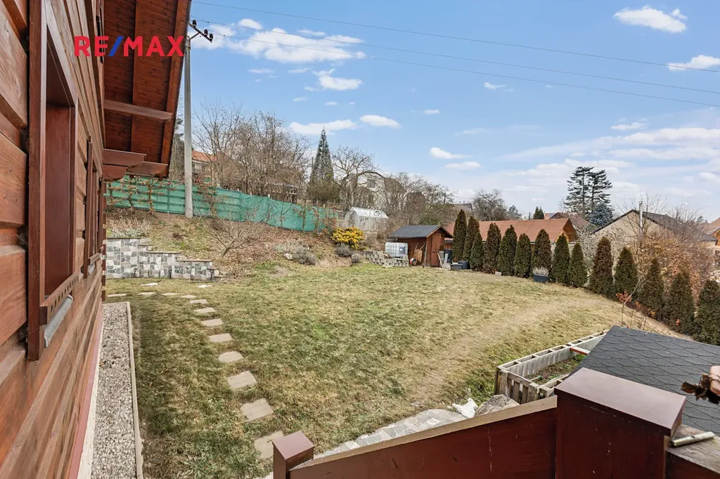 Zahrada je prakticky řešená a nabízí dostatek prostoru pro relaxaci i rodinné aktivity. Velkým benefitem je pergola s venkovním ohništěm, která rozšiřuje obytný prostor domu zejména v letních měsících. Parkování je zajištěno přímo na pozemku pro dvě auta, příjezdová cesta patří k domu.