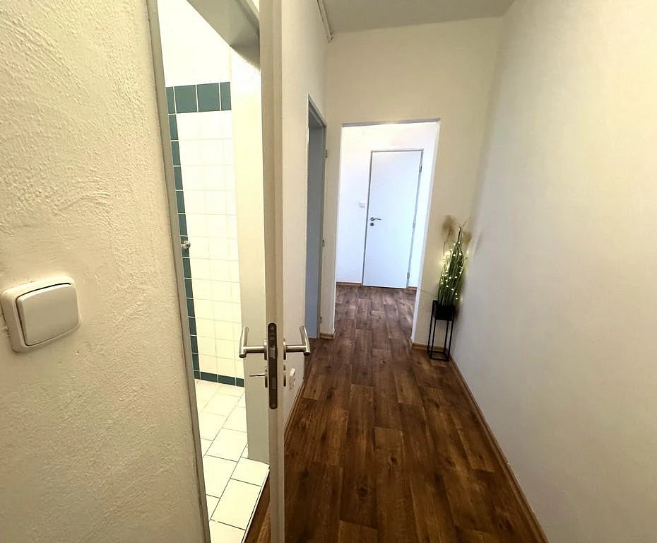 Za vstupními dveřmi se nachází prostorná předsíň o celkové výměře cca 7,12 m², která zajišťuje pohodlný přístup do všech částí bytu. Po levé straně se nachází samostatná toaleta o celkové výměře cca 0,8 m² a dále koupelna o celkové výměře cca 2,41 m², která je vybavena vanou a umyvadlem.