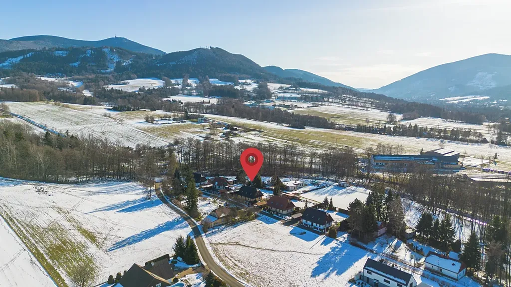Dům se nachází v řídké zástavbě rodinných domů v podhůří Beskyd. Bezprostřední okolí tvoří louky a příroda na úpatí hor s množstvím turistických a rekreačních tras. Přístup k domu je po soukromé asfaltové komunikaci se zajištěnou zimní údržbou. Přestože se nemovitost nachází takřka na polosamotě, nabízí výbornou dostupnost do okolních měst – Frýdek-Místek cca 15 minut, Ostrava cca 20 minut. V docházkové vzdálenosti se nachází mateřská a základní škola, restaurace i zastávka MHD.