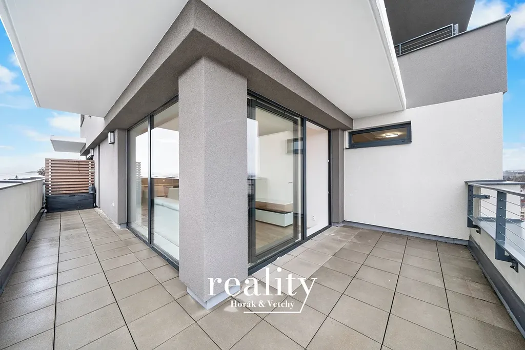 Jde o prosklený, slunný byt v novostavbě bytového domu s výtahem situován v 9. NP a 10. NP (orientace SVJ). Nemovitost je vkusně vybavena, určena k nastěhování. Záměr majitele je nabídnout možnost vysokého nadstandardu bydlení, čemuž odpovídá i vybavení komponentů a příslušenství. Byt disponuje velkorysou terasou (21,39 m2) s nádherným výhledem. V bytě je nainstalována kuchyňská linka včetně veškerých spotřebičů (trouba, lednička, mrazák, myčka, digestoř, indukce), kuchyňský stůl se 4 židlemi.
