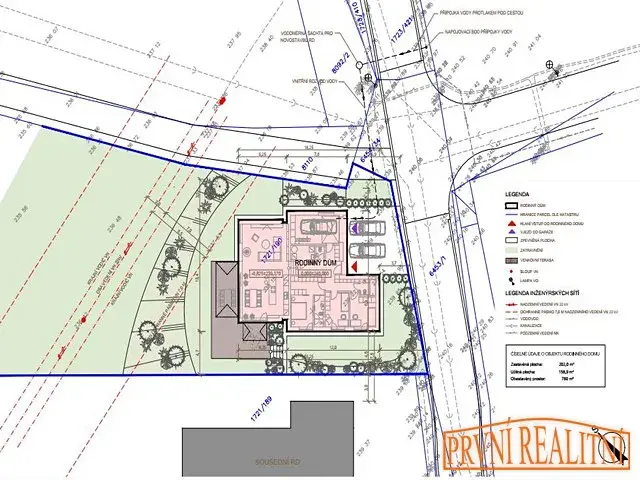- šířka pozemku je 22 metrů