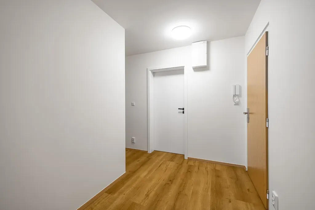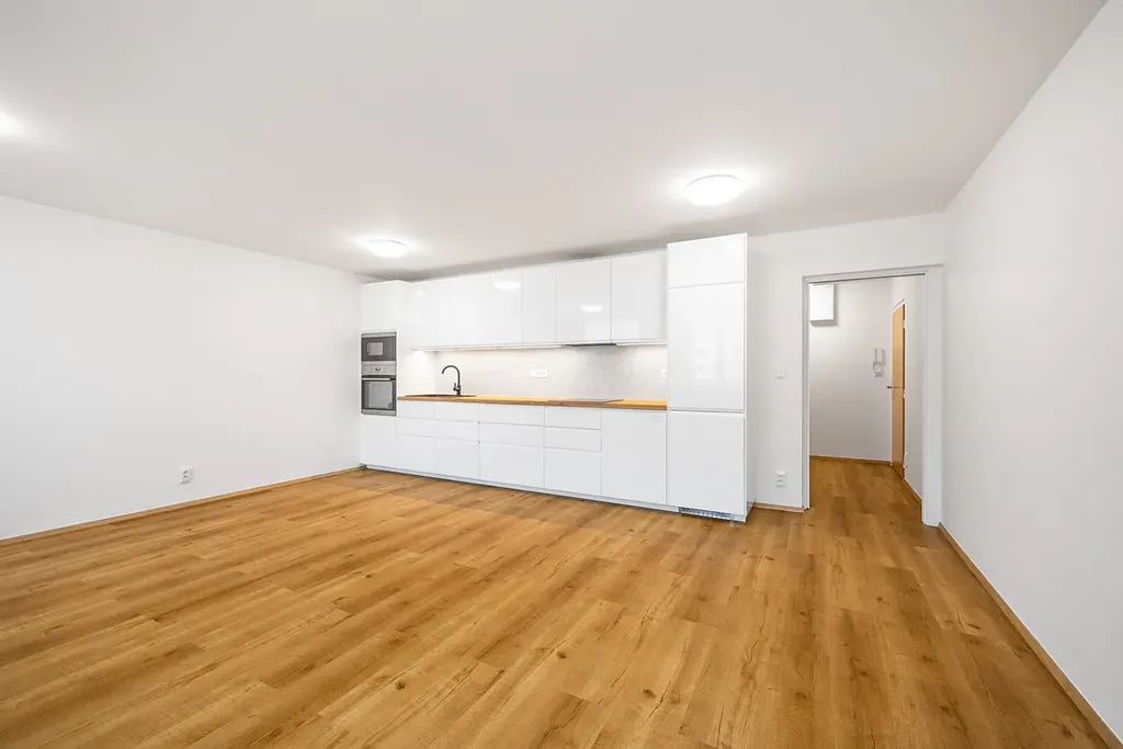 Byt vypadá přesně jak vidíte na fotografiích, nejedná se o vizualizaci. Kuchyně je vyrobena na míru a kompletně vybavená spotřebiči (elektrická trouba, mikrovlnná trouba, indukční deska, myčka). Kuchyně je krásně prosvětlená velkými okny v prostorném obývacím pokoji (32 m2) a tvoří tak příjemný a rozsáhlý prostor pro rodinu. Koupelna je s vanou, sprchovým koutem, podlahovým topením a dvěma designovými umyvadly na praktické skříňce se čtyřmi zásuvkami. Samostatná toaleta má vlastní umyvadlo. V chodbě je prostor na vestavěnnou skříň a dostatek úložných prostor.