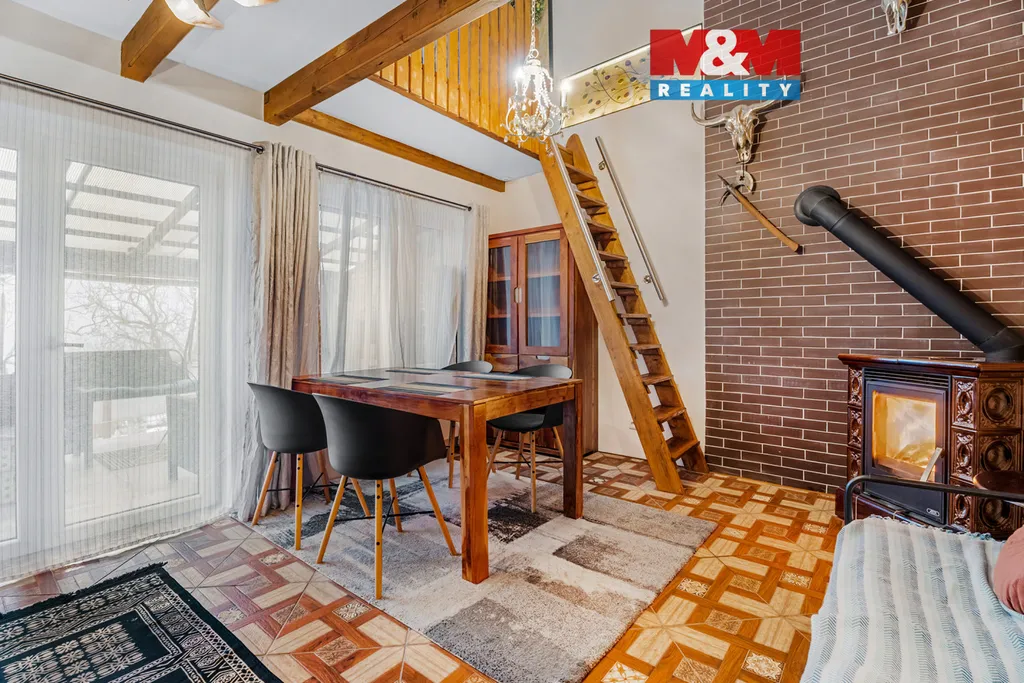 Na chatu navazuje zastřešená terasa s příjemným posezením a zděným krbem. Výhled z chaty na okolí je velkým plusem. Součástí prodeje je i vlastní příjezdová cesta a garáž s elektřinou přímo na pozemku. Chata včetně garáže je zabezpečena kamerovým systémem (s dálkovým přístupem) a pohybovými senzory. Do chaty je zavedena elektřina i voda, odpad je řešen trativodem. V těsné blízkosti se nachází Mladá Boleslav a velmi dobrý dojezd je také do Prahy. Oblast Vinařice – Dobrovice poskytují veškerou občanskou vybavenost. Pro více informací a domluvení prohlídky nás kontaktujte.