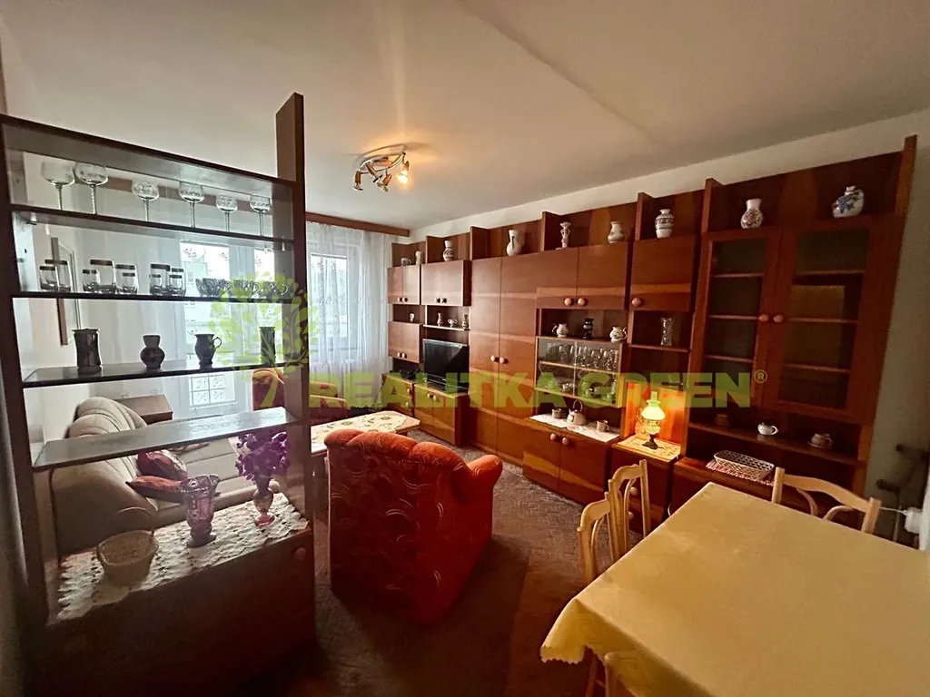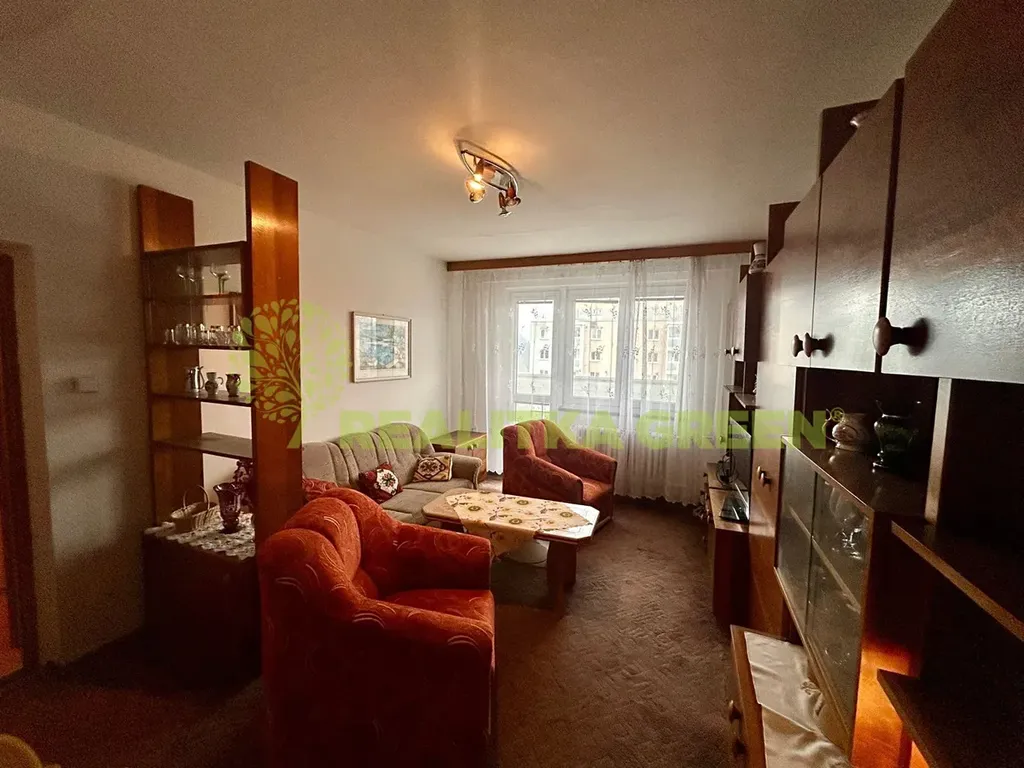 Dispozičně: vstupní chodba, pokoj, kuchyň, prostorný obývací pokoj s balkonem, ložnice, koupelna se sprchovým koutem, samostatné wc. Kuchyňská linka je vybavena plynovým sporákem s elektrickou troubou. Vybavení bytu zůstává tak jak je vidět na fotografiích.