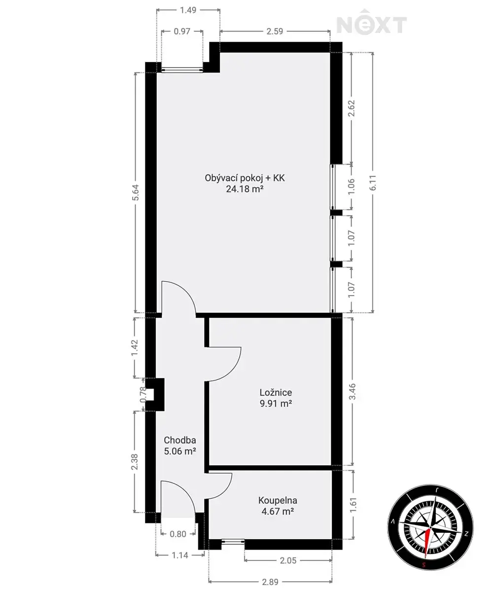 Dispozice dle prezentace. Orientace bytu na západ s volným výhledem.