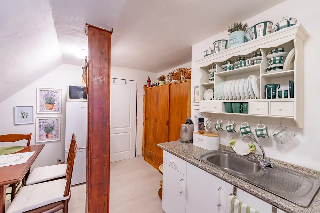 Celková plocha pozemku je cca 1050 m2 a k tomu podíl na soukromém parkovišti. Samotná chalupa stojí v mírném kopci, ale za ní již nejsou žádní sousedé, takže úžasné místo, co myslíte? Kolem chalupy na Vás čeká několik zákoutí s posezením a okrasnou udržovanou zahradou. Potřebné věci a dřevo na zimu můžete skladovat v zahradním domku vedle domu.