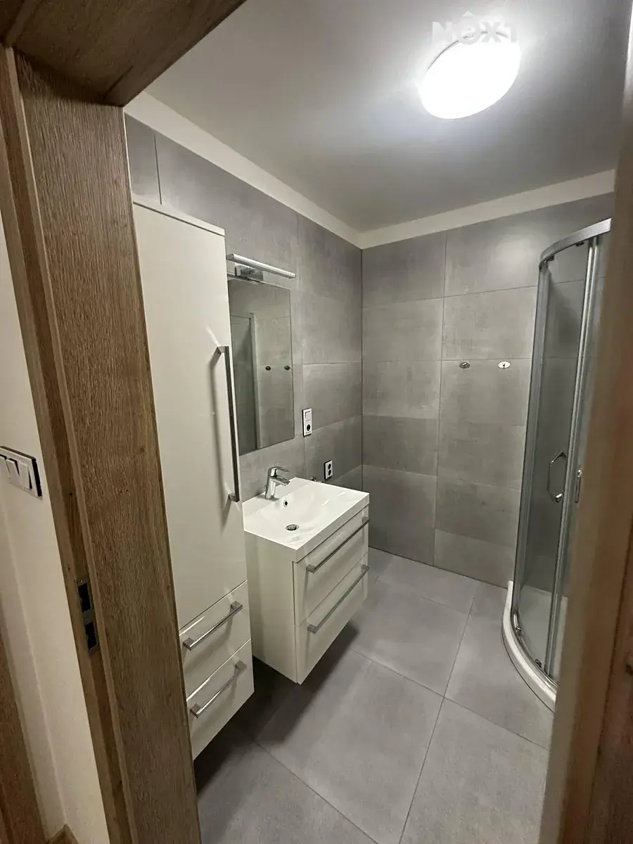 Dispozice bytu: prostorná předsíň, koupelna s WC, kuchyňský kout s obývákem, pokoj. V bytě se nachází kuchyňská linka na míru se spotřebiči ve vysoké kvalitě. V bytě naleznete kvalitní vinylovou podlahu, podlahové vytápění s možností vlastní regulace tepla, dřevěné dveře, velkoformátovou dlažbu a obklady, sanitární vybavení Gröhe. Pro zachování soukromí a klidu jsou v bytě okna s trojsklem a jsou zde i akustické příčky. K bytové jednotce dále náleží jedno parkovací stání před domem. Je možné si pronajmou i další parkovací stání.