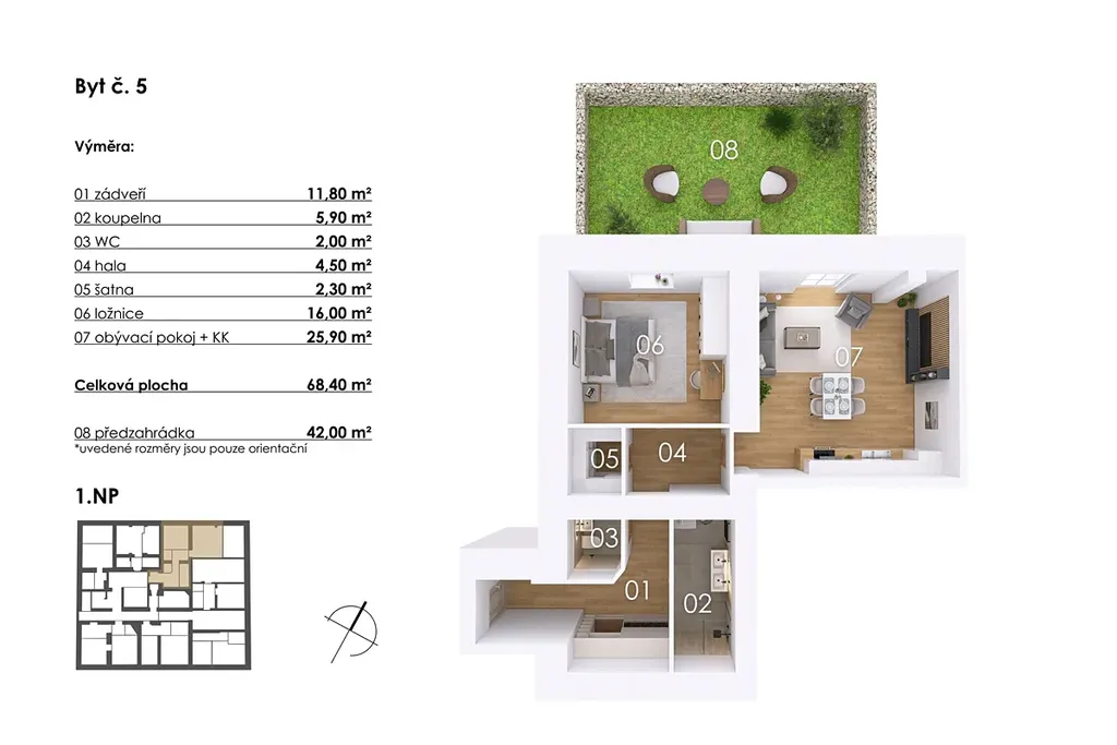 ✔ Vlastní předzahrádka o velikosti 42 m2