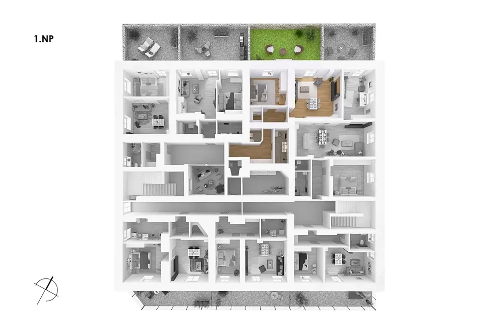 ✔ Parkovací stání a možnost garáží přímo v areálu