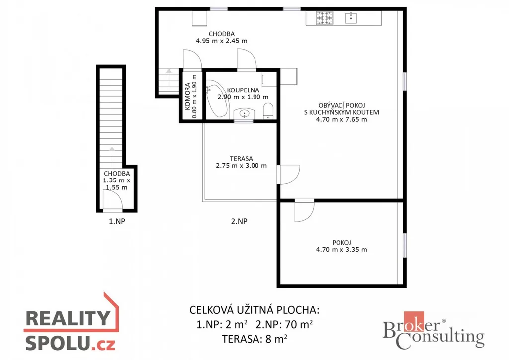 1. byt 2+kk 70m2 + terasa 8m2