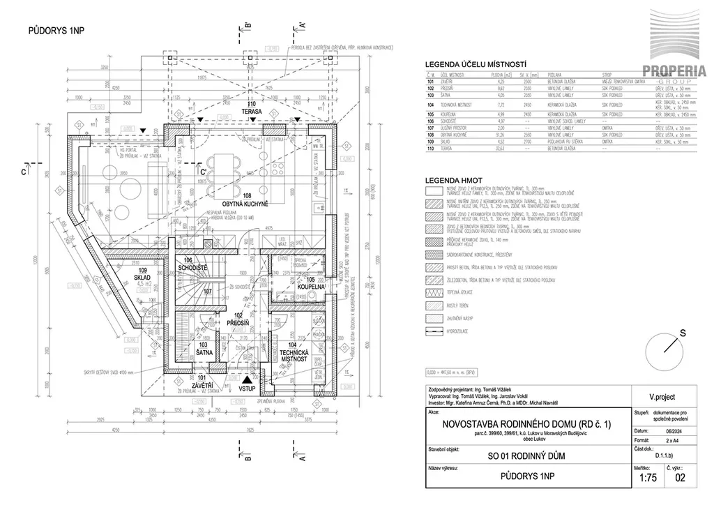 • Zastavěná plocha 120 m² / podlahová plocha: 129,41 m² (1NP = 89,13 m², podkroví = 62,82 m²)