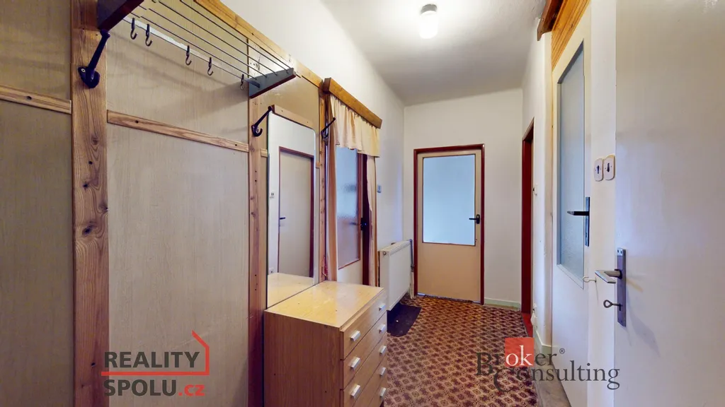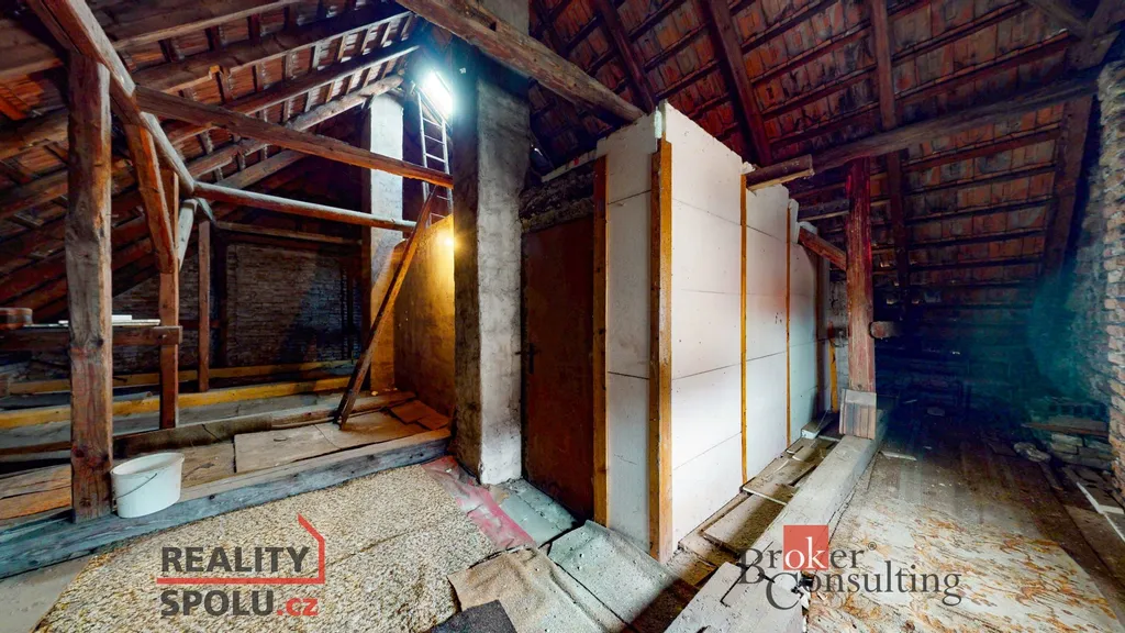 V přízemí domu je prostorná kuchyň, jeden velký pokoj a dva menší pokoje orientované do zahrady. Zároveň je zde malá koupelna se sprchovým koutem. V prvním patře se nachází pokoj s balkonem a vstup na půdu, jejíž dispozice nabízí další prostor pro rozšíření obytných prostor. Dům je celý podsklepený, sklepní prostory poskytují dostatek místa pro skladování, dílnu či hobby zázemí. Celý objekt je v původním stavu a vyžaduje rekonstrukci, což umožňuje budoucímu majiteli vytvořit si domov přesně podle svých představ a standardů. Dům je napojen na veřejný vodovod a obecní kanalizaci. Vytápění je zajištěno plynovým kotlem a ohřev vody průtokovým ohřívačem. Pro inspiraci najdete ve fotogalerii současný a možný budoucí stav obytných místností.