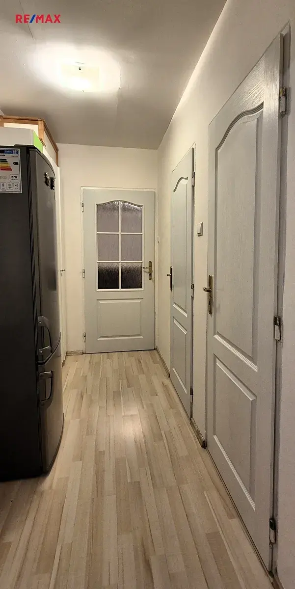 Chodbička se skříní a lednicí – vše má své místo.