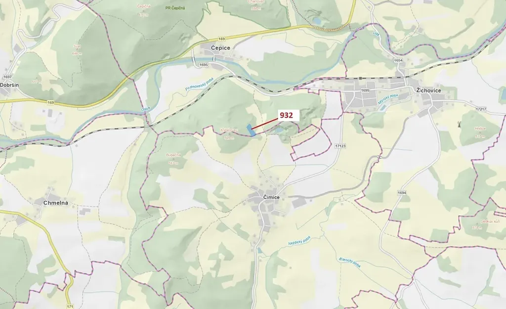 Lesní pozemek o výměře 7 006 m2, parcelní číslo 932, podíl 1/1, katastrální území Čepice, obec Rabí, obec s rozšířenou působností Sušice, okres Klatovy, Plzeňský kraj. Po těžbě.