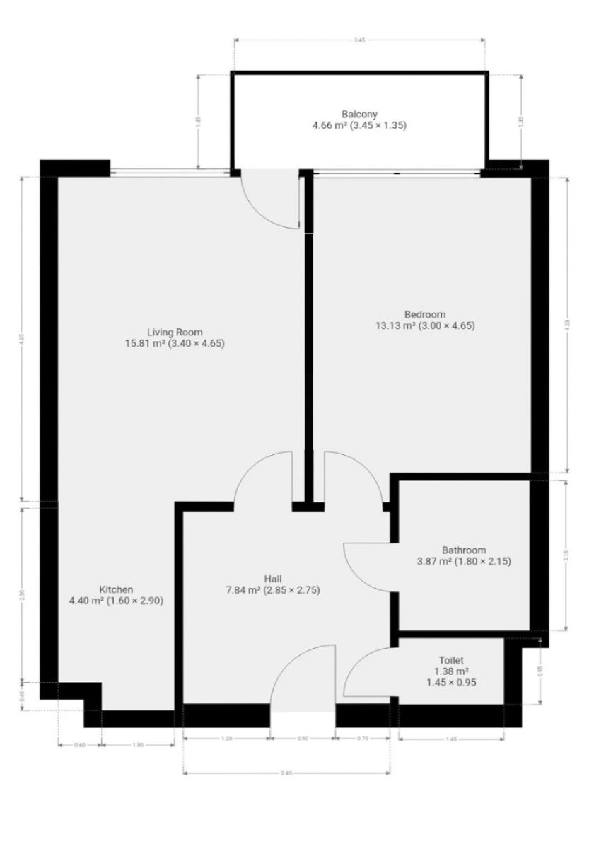 V bytě byla vybudována dělící příčka mezi ložnicí a obývacím pokojem - prodloužena proti té na fotkách.