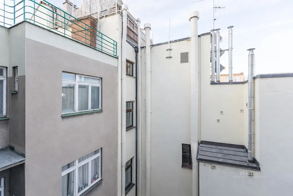 Velkým benefitem je klidný vnitroblok, který nabízí ticho, jaké byste v centru běžně nečekali.