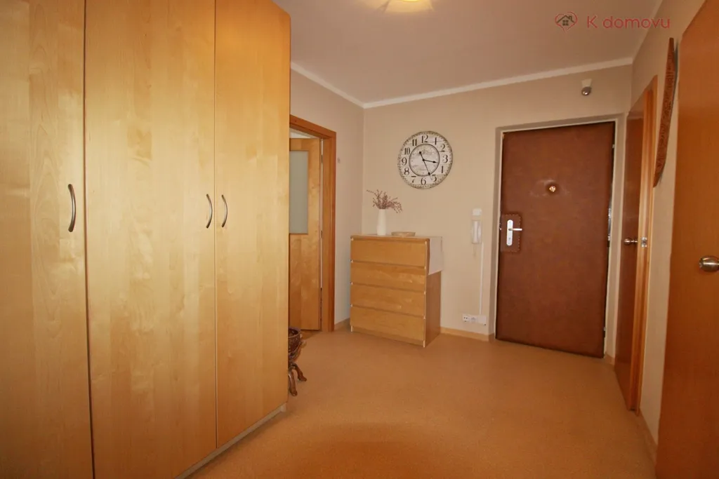 Celkově rekonstruovaný byt se pronajímá částečně vybavený, tak jak je zobrazeno na fotografiích v nabídce. V případě zájmu je možné po dohodě s majiteli některé kusy nábytku odstranit. Dispozice bytu je tvořena prostornou vstupní chodbou se zabudovanou šatní skříní. Velký obývací pokoj